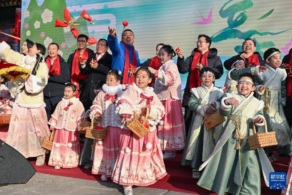 这是文化活动中的喊春仪式(2月4日摄)。新华社记者 李鑫 摄
